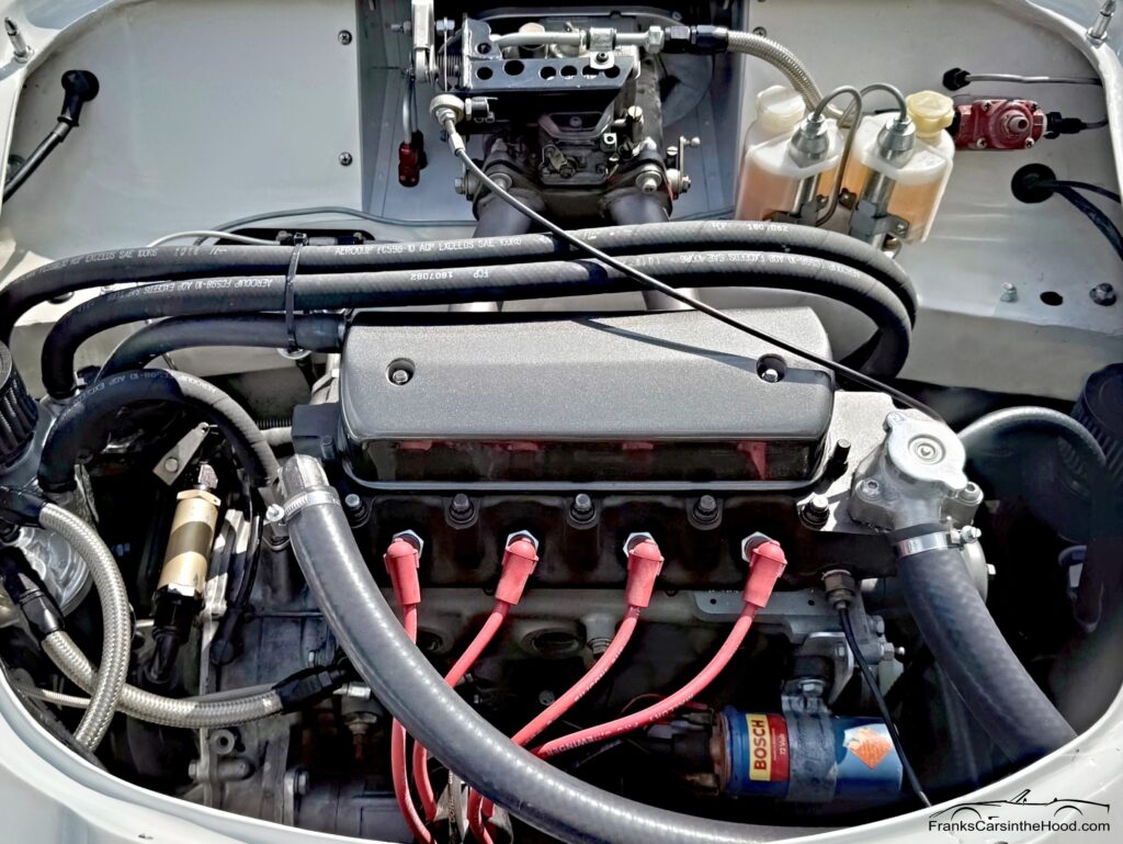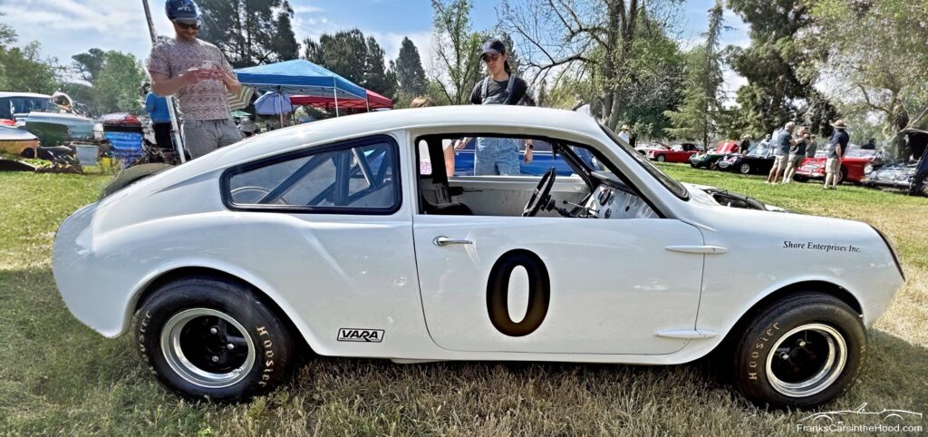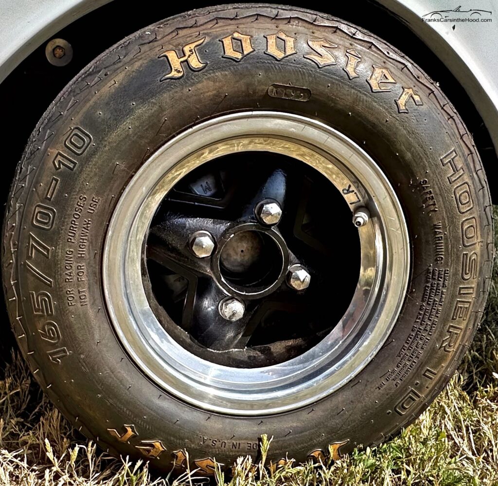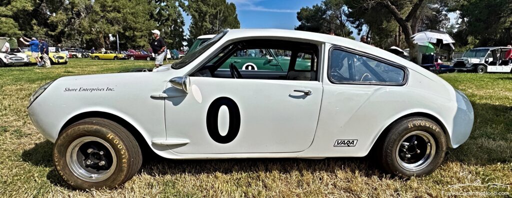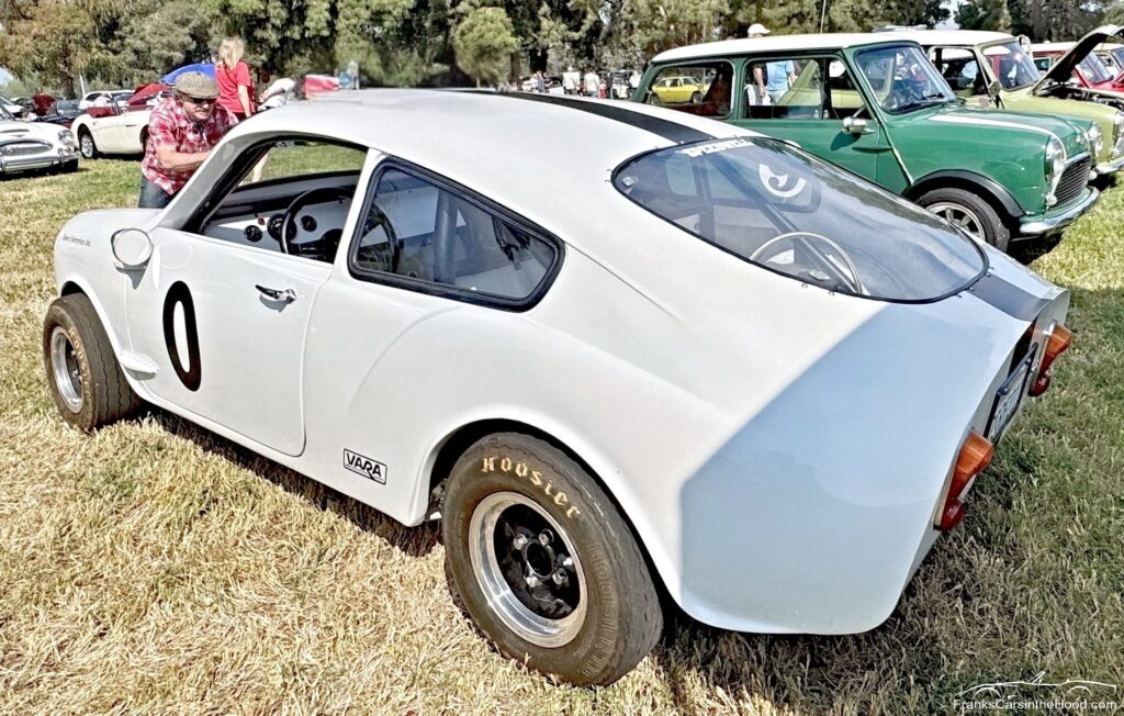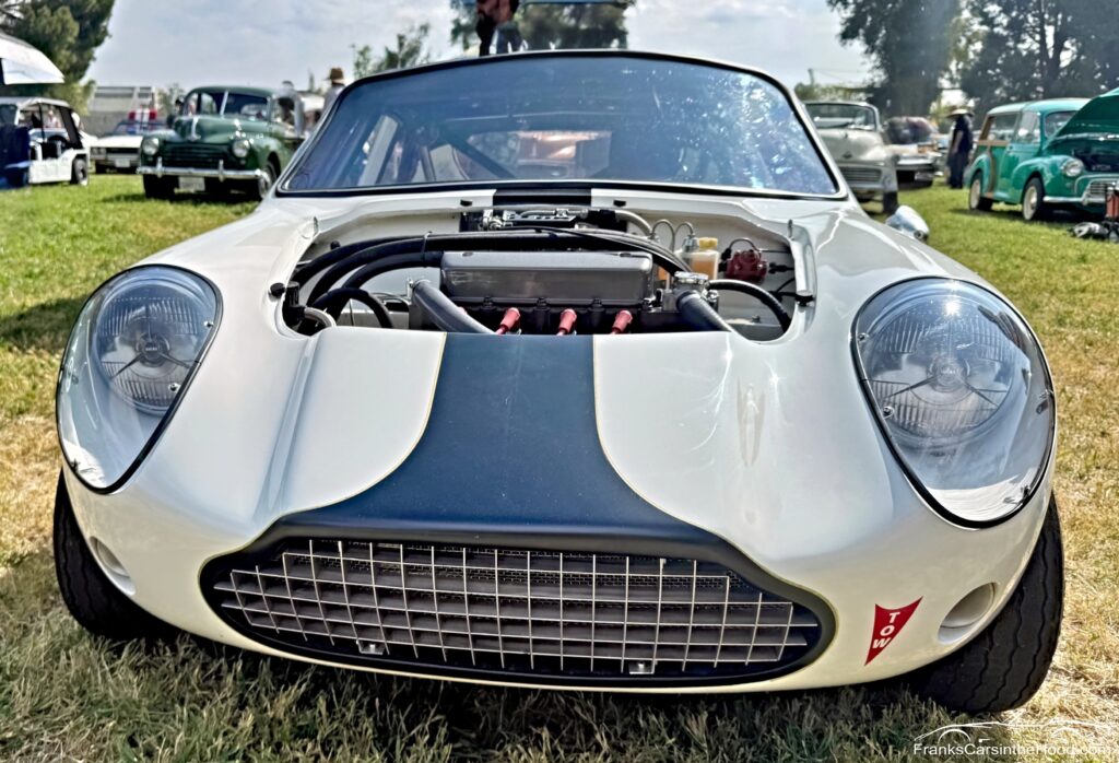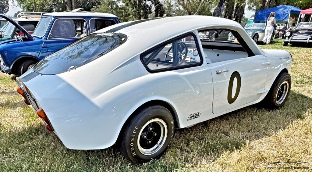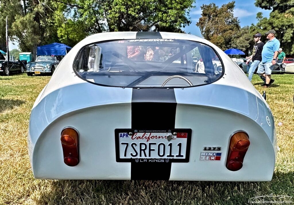 Today’s car is a 1965 Mini Jem race car owned and built by Dale Shore, which I photographed at the 18th Annual Queen’s English All British Car Show 2026 at Woodley Park in Van Nuys, CA. It’s finished in white, with a painted interior, a black racing seat, a black roll cage built by Tom Colby, and only the essential equipment needed for racing. It is powered by a race-built British Motor Corporation (BMC) A-Series inline four-cylinder OHV engine, originally 1275cc and offset bored to 1380cc, producing in excess of 120 horsepower, and equipped with a Weber 45 DCOE carburetor, mated to a Jack Knight 4-speed manual straight-cut close-ratio gearbox mounted transversely with a limited-slip differential and a 3.90:1 final drive ratio. Braking is handled by slotted and cryogenically treated front disc brakes with Mini spares alloy four-piston calipers and Minifin rear drums, consistent with a performance-oriented Mini setup. The suspension retains the Mini’s Moulton rubber cone design, upgraded with Hi/Lo ride height adjusters at all four corners, allowing the stance to be dialed in precisely, with adjustable camber and caster arms up front and KAD camber and toe adjustments in the rear, giving the car a level of suspension tuning well beyond a standard Mini. Unlike a standard Mini, the Jem features a lightweight fiberglass body, significantly reducing weight and improving performance, and even standing still, its low stance, short wheelbase, and compact proportions give it a purposeful, competition-inspired look that reflects its racing roots.