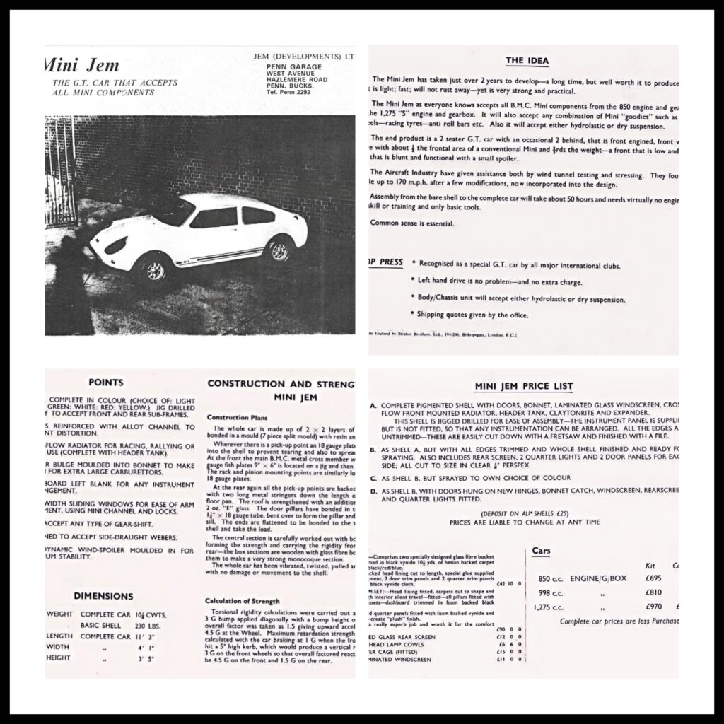 Following the early development of the Jem, similar concepts were already taking shape, most notably with the Mini Marcos, which shared similar aerodynamic principles and Mini-based mechanicals. Together, these cars represent a unique branch of Mini evolution, where independent builders pushed the limits of performance through lightweight construction and improved aerodynamics.