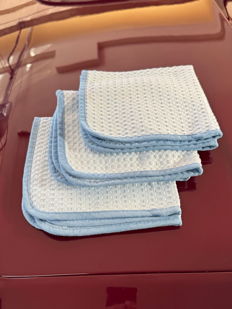 Waffle weave towels are best for windows, and this one is my favorite. It comes in various sizes; I use 16″x 16″.